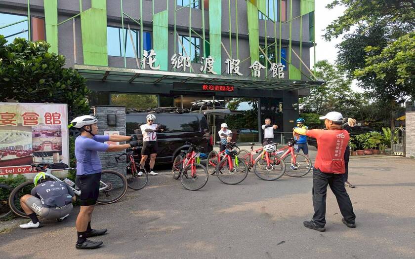 微逆風中,車隊穩穩推進,8天的累積讓這段變得輕鬆許多。最終抵達枋寮,全員到齊,再滑進今晚的落腳點——枋客文旅。