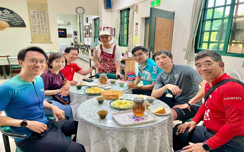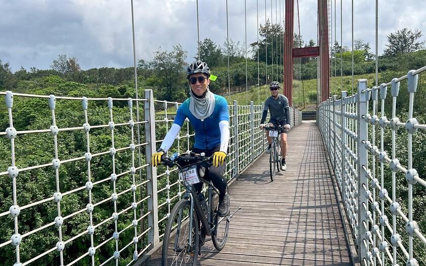 最後進入梅竹蹊自行車道。這段路,像是與外界隔絕的秘境。竹林搖曳、溪水潺潺,空氣帶著濕潤與清新。路徑時而狹窄、時而陡升,但在這樣的景色裡,反而多了一份專注與寧靜。黃昏時分,風帶著涼意,車隊緩緩滑入今晚的山水綠境民宿。