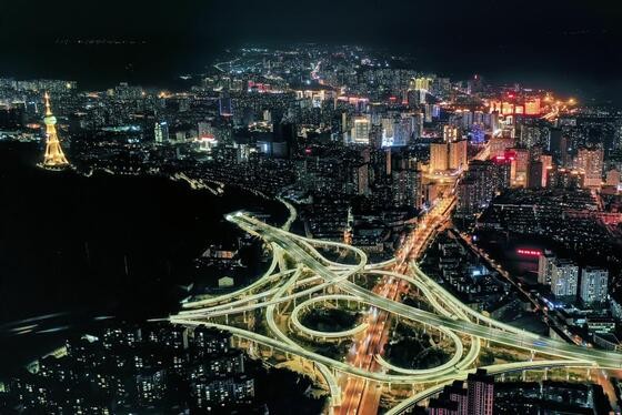 「夏都」夜晚的城區燈火與高原星空相互輝映,展現出獨特的邊城氛圍。